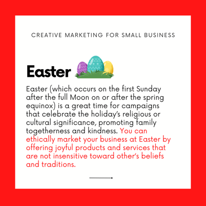 Need some reminders on what holidays to be ready for? Here is a list of some major holidays and how you can ethically promote your business!